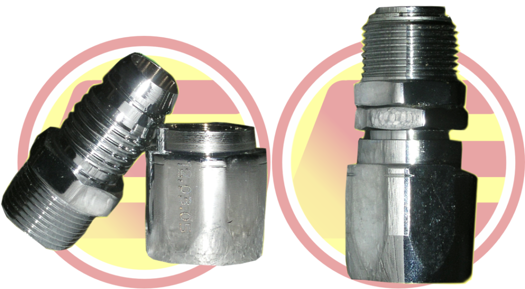 Acoples reusables para manguera. Terminal fijo o giratorio para mangueras de combustible, construido en material que evita la generación de chispas al contacto con el suelo u otro metal.