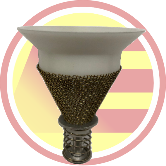 Elemento filtrante de malla. Dispositivo que sirve de reemplazo para el conjunto de micro filtración externo. Fabricado en malla de acero lavable.