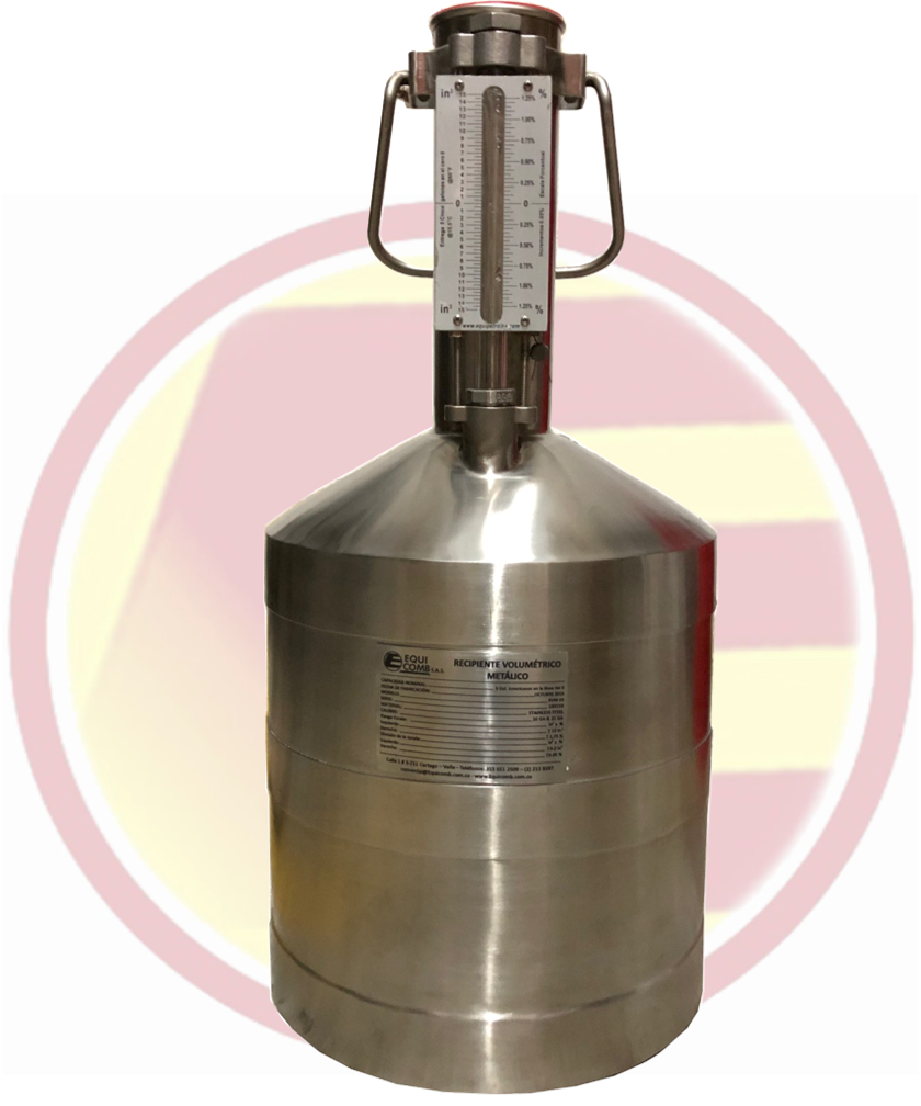 Serafín. Calibrador volumétrico de 5 galones con caja metálica. Con certificado expedido por laboratorio autorizado por SIC. Disponible en acero inoxidable y acero Coll Rolled color rojo.
